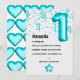 Turkos temed number balloon först födelsedagsfest inbjudan.