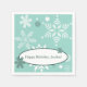 Ett vintertemat Grattis på födelsedagen-turkos-blånapkin visar snöflingor med ett namn - Grattis på födelsedagen - önskning. Justera texten så att den fungerar för ditt barns firande. Kontakta https://t.me/KBMD3signs_chat om du vill ha hjälp med färg och anpassning eller diskutera ett anpassad design.