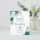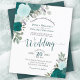 Dessa prisvärda och budgetvänliga bröllopsinbjudningar är det perfekta valet för klass, stil och skönhet på en budget. Den eleganta designen har handmålade akvarellrosor i nyanser av teal, turkos, akva och cyan, med en mängd eucalyptusblad och grönska. Typografin har prydlig, dekorativ kalligrafi och baksidan har en djup marmorerad tealfärg. Ett underbart sätt att inbjuda dina vänner och familj att dela din glädje på din speciella dag utan att bryta banken.