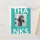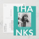 Trendig, ett modernt studenten-tack som du har med student-fotot med "tack" i fet vit stil och turkotisk bakgrund. Anpassa framsidan av fotot. Tack för att du skrev på studenten genom att lägga till student namn, namn och studenten. Baksidan av fototacket i studenten innehåller returadressen med utrymme för ditt skrivna eller handskrivna meddelande.
