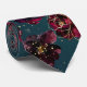 En turkosblå, safirblå och vinröd juveltonad bröllops halsduk med en symfoni av djupa bordeaux hallonröda peonior prydda med guldspray och skimrande guldkanter mot en djup turkosblå akvarell-målad bakgrund.