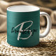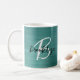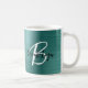 Turkos Borstad Metall Svart Vitt Skript Monogram Kaffemugg