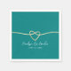 Lägg till en modern, minimalistisk touch till ditt bröllop med dessa eleganta turkosa servetter. Med ett falskt guldrepphjärta och enkel handskriven kalligrafiskrift är varje servett personlig med parets namn och bröllopsdatum, vilket gör det till ett chic och tidlöst tillägg till din fest.