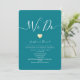 Vi presenterar vår stilrena och minimalistiska mikrobröllopsinbjudan - perfekt för er unika minimony. Med en fräsch, modern färgskala i vitt och dammig tealblått utstrålar denna design modern sofistikation. Ett delikat guldfoliehjärta tillför en touch av värme och sötma, som perfekt representerar den varaktiga kärlek ni delar med er partner. Skräddarsydd för intima firanden sätter denna inbjudan tonen för en personlig och hjärtlig ceremoni där varje element talar till historien om er kärlek.