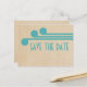 Modern och sofistikerad Deco Chic Spara Datum Postkort i turkos med ett par stilrena art deco cirkeldekorationer och en falsk pappersstruktur digital konst bakgrund. Detta stilrena spara datum postkort är perfekt för att tillkännage ditt eleganta bröllop. Lätt att anpassa, lägg bara till din bröllopsinformation i de angivna utrymmena. Klicka på "Anpassa" för att hitta fler anpassningsalternativ.