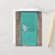 Turkos-dörr med papper blomma vykort