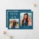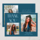 Modern och fantasifull examensbevis fotokort med 2 bilder på framsidan och 1 på baksidan. Texten säger "TACK" med gnistrande stjärnor. Lägg till examenens namn, information och meddelande för att anpassa detta kort. Turkos.
