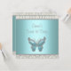 Elegant elfenbensvit och silver damask med turkosblå och silver fjäril söta sexton födelsedagsfest inbjudan.