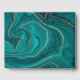 Bild av en turkos flytande abstrakt marmorerad textur med en guldbotten, Bröllopsfest inbjudan.
