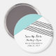 Modern och trendig Geometric Rand Spara datum magneter med turkospartiangel och tunt strimmig accent. Den här enkla men ändå elegant-magneten är konfigurerad för att enkelt kunna anpassas med din bröllop-information. Hitta fler anpassningsalternativ genom att klicka på Anpassa.