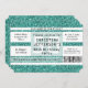 Faux glitter, turkos teal blue-grönt färgad biljett stil inbjuds som ett tillstånd till film- eller biografteater. Anpassadet för din händelse eller tillfälle är för den unika inbjudan till det femtionde biljett-stil. Använda den för en 50:e födelsedagsfest eller en händelse. Glitter ser bakgrunden med vita indelningar och avsnitt, med en stil-text utskriven på datorn.