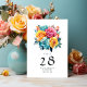 Turkos, gul och rosa blomsterbröllop bordsnummer