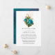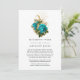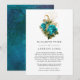Trendig blomster vattenfärg reducerad bröllops inbjudan i turkos - teal och guld. I dessa osäkra tider kan det hända att du måste hålla ett mindre bröllop än vad som ursprungligen planerats. Detta annonskort tar bort pinsamheten och tar en tyngd av dinnet! Du kan dessutom ge ett alternativ att gå med i en virtuell ceremoni.