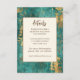 Bröllopskortet visar en modern vacker turkos och guld abstrakt akvarellbakgrund. Den innehåller information om mottagning och bröllopswebbplats och kan anpassas till dina önskemål.