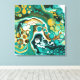 Turkos, Guld, Marble Fluid Art Canvastryck