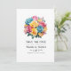 Turkos, Gult och Rosa Blommigt Bröllop Spara Datumet