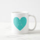 Modern anpassade mugg med turkotisk hjärtillustration med enkelt typografiskt monogram. Anpassa mugg genom att lägga till ditt eget brev. Det här blir perfekt som gåva.