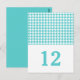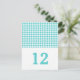 Enkel men elegant Houndstooth Bordnummer Postkort med en trendig turkos och vit houndstooth mönsterbakgrund. Lätt att anpassa med dina bröllopsdetaljer. För fler anpassningsalternativ, klicka på knappen Anpassa.