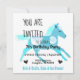 Anpassa enkelt den här turkosponny födelsedagsfest inbjudan för vilken födelsedagsålder som helst! Matchande kvestriansk stationär, och presenter är också tillgängliga för din flickas gryfödelsedag. Underbar för en ponytur party, häst, ridtema. Små hästar, mini-hästar eller Shetlandponnyer.