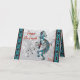 Personalisera detta "Unikt" Sydväst Kokopelli Julkort! Det har en Turkos Sydväst Kokopelli som spelar flöjt med notblad på en silver julbakgrund med snöflingor, omgiven av turkos, rost och svarta ramar och de uppiggande orden..."Fred på jorden"!