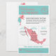 Ha kul med ditt destinationstema bröllop. Palmträd, sjöstjärna och karta över Mexiko i färgerna Turkos, Korall och Vit. Detta är för Cabo, Mexiko och ett hjärta är placerat över platsen på kartan över Mexiko. Anpassa mer text på baksidan om du behöver ytterligare utrymme. För förfrågningar om anpassade designändringar av den oberoende designern, vänligen maila paula@labellarue.com INNAN du anpassar eller lägger en beställning.