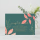 Elegant och modern vattenfärgblad handskriven tematiskt par bad inbjudan i turkos teal med korall och guld blad med utrymme på baksidan för ytterligare information. För matchande festtillbehör kontakta formgivaren. Du kan överföra denna design till en magnetisk inbjudan eller annan storlek, stil som önskas.