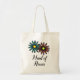 Två vackra blommor med kronblad i korall och turkos och soligt gula mitt. Brudtärna är skrivet med elegant svart skrivstil för sommar eller strandbröllop känsla. Klicka på Anpassa för att ändra blommornas kronbladfärger, om du önskar. Trevlig gåva från den blivande bruden att ge till bröllopsgästerna att fylla med något extra speciellt. Originalkonst och design av TamiraZDesigns.
