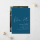 Med alla pandemirestriktioner och säkerhetsprotokoll, informera dina vänner och nära och kära om ditt nya bröllopsdatum med detta moderna minimalistiska annonskort som säger ”nytt datum” i kalligrafi-typografi och turkos färgtema. Du kan också anpassa fotot på baksidan.