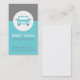 Ett visitkort med en ikon av en framifrån vy av en bil med en färgpalett av turkos, grå och vit. Modern, professionell, stilren och ren design, detta visitkort är bra för alla inom bilindustrin. Exempel inkluderar körinstruktörer, förare, chaufförer och bilförsäljare. Anpassa enkelt med dina företagsuppgifter.