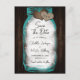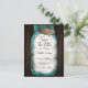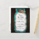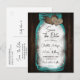 Rustik turkos bröllops inbjudan postkort med en murbruksvas med lampkulor och säckvävshjärta mot en gammal trädgårdsvägg. Anpassa enkelt detta turkosa bröllopskort online. Matchande artiklar finns.