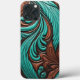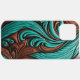 Turkos och Chocolate Tooled Western Mönster Tooled Leather look, Turcos blommönster Graphic.