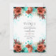 Turkos och Coral Rustic Blommigt Bröllop Inbjudningar