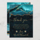 Turkos och guld glitteragat bröllopsfest tack kort