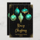 Skicka varma välgångsönskningar med detta sofistikerade julkort i platt design med fem eleganta ornament i tealblå och guldtoner. Varje ornament har en unik design - blommig, snöflinga, droppande falskt glitter, diamantmönster och stjärnor - mot en rik svart bakgrund med gyllene gnistrande detaljer. Den lyxiga paletten och det raffinerade arrangemanget gör detta kort perfekt för stiliga familjer, formella hälsningar eller företags julmeddelanden. Perfekt för dem som älskar modern elegans med en festlig twist.