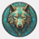 Turkos och Guld Varg Runt Klistermärke