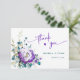 Detta vackra turkos och lila bröllops tackkort är helt anpassningsbart för din speciella dag. Handla idag!
