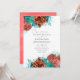 Turkos och Living Coral Rustic Blommigt Bröllop Inbjudningar