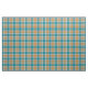 Fabric med en Plaidwerx ursprungliga sportiskt plaid mönster i turkos, orange och vitt, med marinblå accenter. Mönster upprepar var 2:e tum. Speciell order större via https://plaidwerx.com/contact.htm