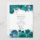 Turkos - turkos och silver akvarell blommig bröllopsinbjudan. Perfekt för alla teman eller trädgårdsbröllop. QR-koden på baksidan dirigerar till din bröllopssida där folk kan lära sig mer och svara.