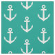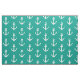 Turkos blått och vitt nautiska ankartextilväv. Anpassadets bakgrund färg. Underbar för DIY-projekt, kläder, bord-kläder och mycket annat. Tema till havs med båtankarutskrift. Underbar för sjöfart/segling.