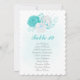 romantisk turkos och vita blommor på ett vackert säteskort för andningsskydd... bordsnummer.. Uppgifterna om glitter simuleras.