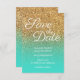 Turkos Ombre Guld Glitter Foto Spara Datum Inbjudningar
