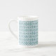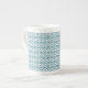 Turkos på vit etnisk mönster, blommor, sicksack benporslin mugg