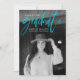 Modern studenten-meddelandekort med studentens favoritfoto på framsidan med "Student" i ett handskript med turkos. Anpassa början till tillkännagivandet genom att lägga till student namn, namn och studenten. Trendigets studenten meddelande återgår till visningen med ytterligare tre foton med utrymme för text, t.ex. framtida planer, uppgifter om studenten, närmare uppgifter om party etc. Det fyra fotot-studenten-meddelandet är perfekt för både high school och College studenter.