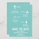 Berätta för alla dina gäster lite om din relation ~ kanske några roliga fakta de inte känner till! Dina gäster kommer att älska detta roliga och nyckfulla Spara datumet i färgen Ljust Turkos och Vitt! För förfrågningar om anpassade designändringar av den oberoende designern, vänligen maila paula@labellarue.com INNAN du anpassar eller lägger en beställning.