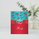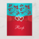 Turkos, Röd Blommig, Hjärtan Bröllopssvarskort OSA Kort