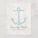 Perfekt för en nautisk bröllopsfest är detta Rostiga Ankare Spara Datum Postkort med ett turkost båtankare på en ljus beige marmorerad bakgrund. Detta klassiska och enkla spara datum-kort är lätt att anpassa med dina bröllopsdetaljer. Hitta fler anpassningsalternativ genom att klicka på Anpassa.