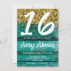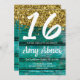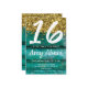 Turkos Rustic Guld Glitter 16 Födelsedagsfester in Inbjudningar
