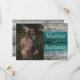 Det här vågrät är en svartvit träplankerad design som har ett starkt stänk av turkos och som har plats för lodräts bild, namn, datum, plats och anteckningstext. Med en blandning av klassiskt och sofistikerat typsnitt kommer det här datumet säkert att locka och upphetsa din gäst! Det svarta och vita, rustiska träet på baksidan är dock helt anpassade.