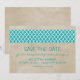 Eleganta och sofistikerade Rustika Fyrklöver Spara Datum Annonser med en vintage strukturerad bakgrund och en modern mönsterkant i turkos. Lätt att anpassa, lägg bara till dina bröllopsdetaljer. Klicka på "Anpassa" för att hitta fler anpassningsalternativ.